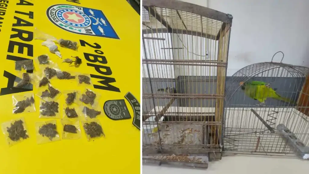 Além do entorpecente, os policiais também identificaram um crime ambiental no interior da residência.