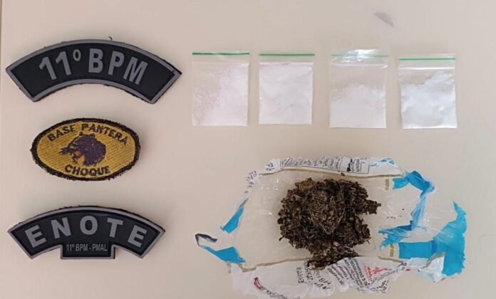 De acordo com as informações policiais, ao chegar ao local, os militares encontraram o menor, que admitiu ser usuário de drogas e ter feito uso de entorpecentes instantes antes da abordagem. Ele apresentava resquícios semelhantes à cocaína nas narinas. Durante a averiguação, o adolescente informou ainda ter quatro papelotes de substância análoga à cocaína e uma porção de maconha, que foram apreendidos pela guarnição.