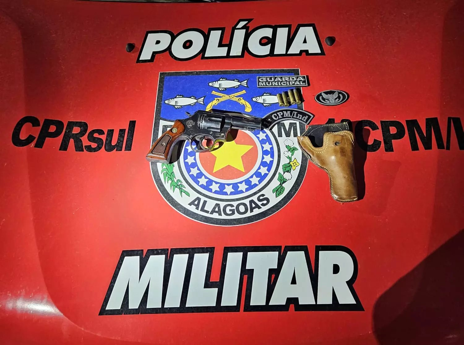 Durante a abordagem, foi constatado que o homem apresentava sinais de embriaguez ao conduzir seu veículo, onde foram encontradas quatro munições calibre 38. Já na residência, os policiais localizaram um revólver do mesmo calibre, um coldre e mais quatro munições, sendo uma deflagrada.