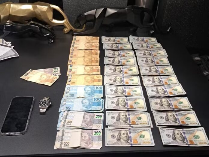 Dinheiro apreendido pela PF durante a ‘Operação Augusta’, contra o vazamento de operações sigilosas dentro da Polícia Civil de São Paulo. — Foto: Reprodução/TV Globo