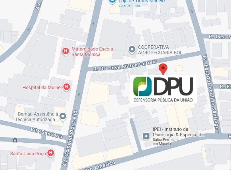 A Defensoria Pública da União (DPU) em Maceió (AL) anuncia a suspensão, entre os dias 5 e 15 de setembro, do atendimento presencial ao público em razão da mudança de endereço. A sede sairá do bairro da Pajuçara e passará a funcionar, a partir do dia 16 de setembro, na Rua Doutor José Milton Correia, nº 80, no bairro Poço (antiga loja BukOne, próximo à Maternidade Santa Mônica).).