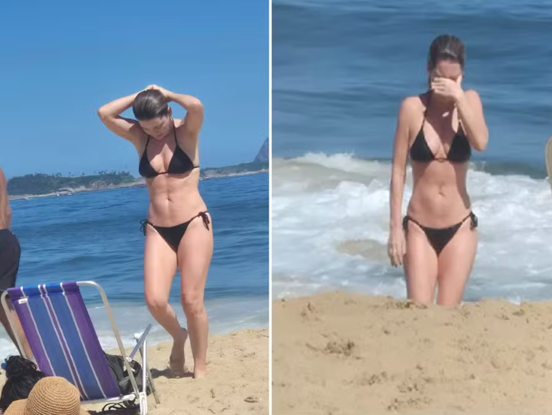 Em dia de calorão, Cláudia Abreu aproveita praia e mergulho no mar do Leblon | Foto: Extra