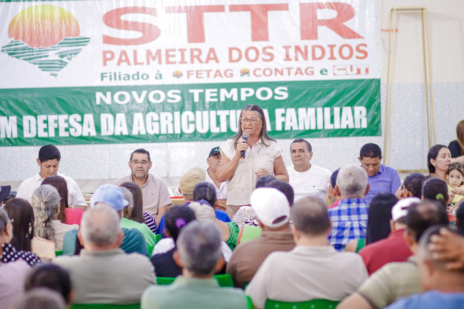 A prefeita Tia Júlia, acompanhada do secretário de Estado de Relações Federativas e Internacionais Júlio Cezar, participou nesta segunda-feira (22) da solenidade de posse da nova diretoria do Sindicato dos Trabalhadores Rurais de Palmeira dos Índios (STTR). A entidade será conduzida por 32 integrantes de diversas comunidades rurais no quadriênio 2025/2029. Durante a cerimônia, a prefeita anunciou mais uma edição da Operação Pipa Mais Água Agricultor, ação voltada ao abastecimento de água nas comunidades rurais afetadas pela seca.