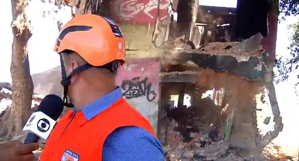 Um imóvel de dois andares desabou durante uma entrevista para o telejornal da Inter TV RJ. A gravação ocorria às margens da BR-101, em Campos dos Goytacazes, no Norte Fluminense, nesta segunda-feira (27), quando a estrutura, atingida por incêndio na tarde de domingo (26), veio abaixo.