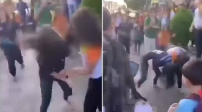 A confusão começou após o fim das aulas, na rua Cariús. Vídeos gravados por testemunhas mostram as duas meninas agarradas e puxando o cabelo uma da outra. Uma das meninas, que veste uma camisa de cor escura, golpeia a outra, que está com a farda da escola, utilizando o objeto cortante.