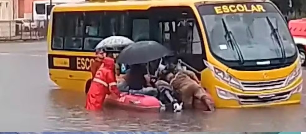 Cerca de 20 pessoas precisaram ser resgatadas após ficarem ilhadas dentro de um ônibus da Prefeitura de Itapororoca, que apresentou falha mecânica e ficou preso em um alagamento em frente à Companhia Brasileira de Trens Urbanos (CBTU), na tarde desta sexta-feira (15), em João Pessoa. O veículo transportava estudantes para instituições de ensino na capital, e entre os ilhados estavam o motorista e os estudantes.