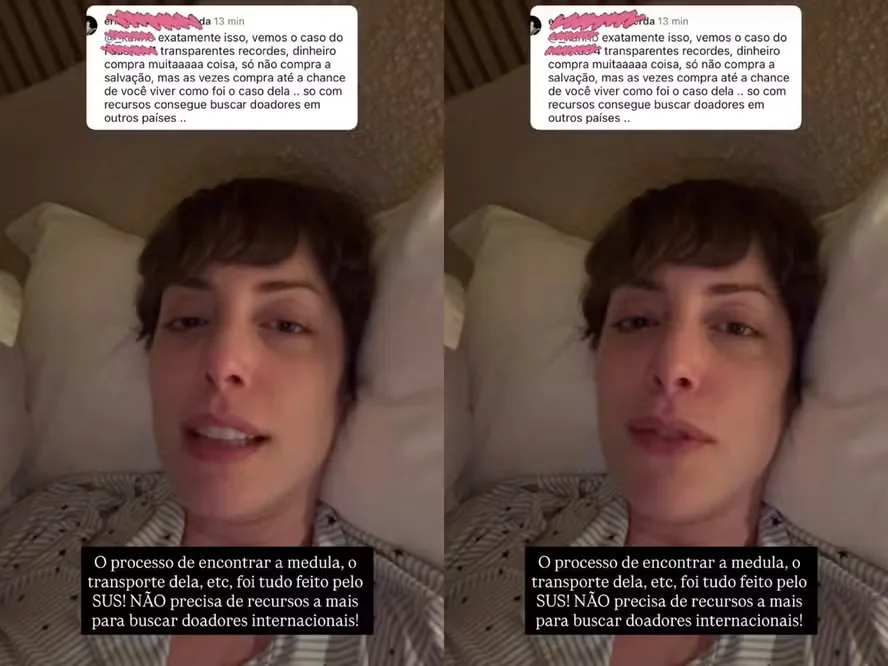 “Sei que tenho acesso a médicos excelentes e não estou ignorando esse fato, mas cuidado com as informações que vocês disseminam por aí que não são corretas. E não tem fila de transplante de medula óssea”, complementou.