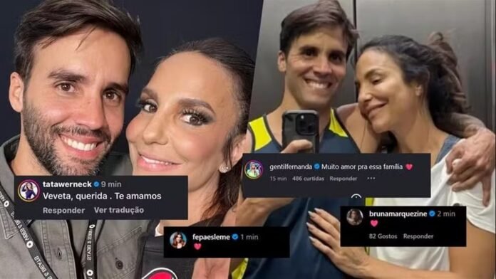 Tata Werneck escreveu uma mensagem de apoio para a cantora, frisando o seu amor pela amiga: “Veveta, querida. Te amamos muito!”. A cantora Roberta Sá também fez questão de comentar: “Um abraço bem quentinho para vocês!”; Fernanda Gentil também apoiou o ex-casal: “Muito amor para essa família”.