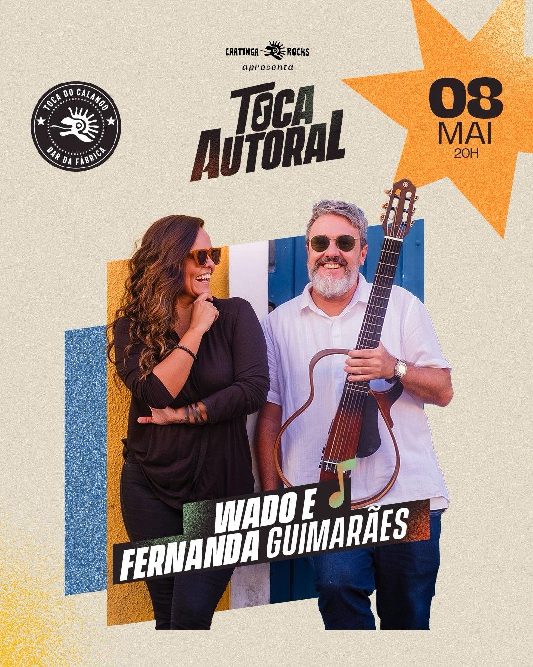 No dia 08 de maio, quinta-feira, os cantores alagoanos Fernanda Guimarães e Wado se unem pela primeira vez em um show totalmente autoral, que será realizado no bar-fábrica da Caatinga Rocks, o Toca do Calango, localizado na Rua Melo Póvoas, nº 258-B, no Jaraguá.