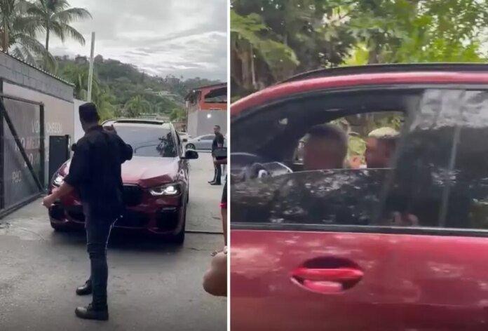 MC Poze esteve por lá e deixou a festa de carro, já com o dia claro, acompanhado de uma loira que usava a camisa do Flamengo.