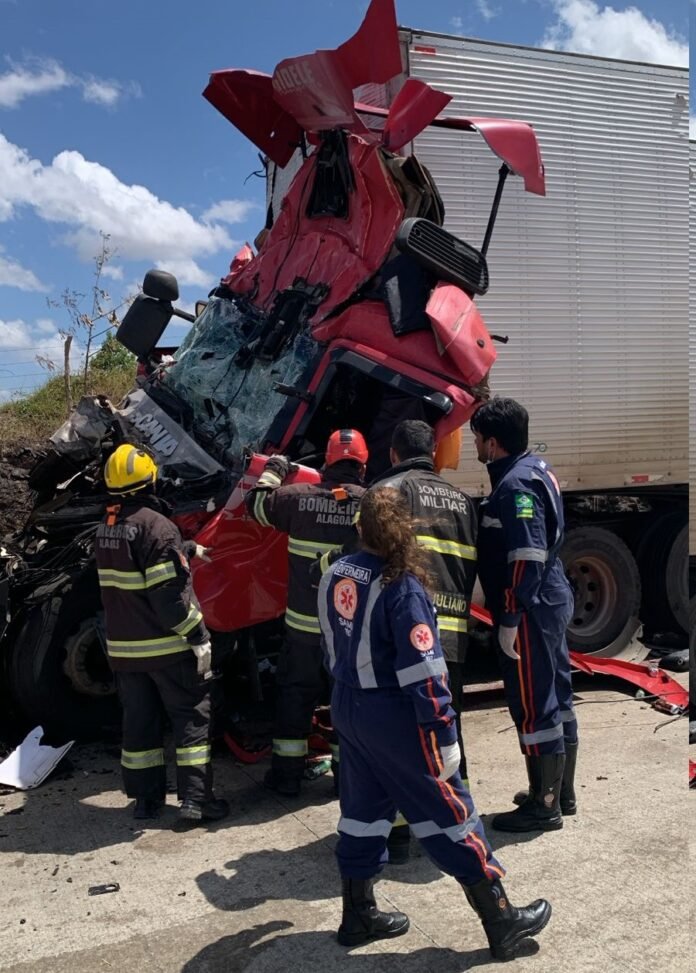 Um grave acidente envolvendo uma carreta e um caminhão resultou na morte de uma pessoa na tarde desta sexta-feira (19), em um trecho da BR-101, entre os municípios de Igreja Nova e Porto Real do Colégio.