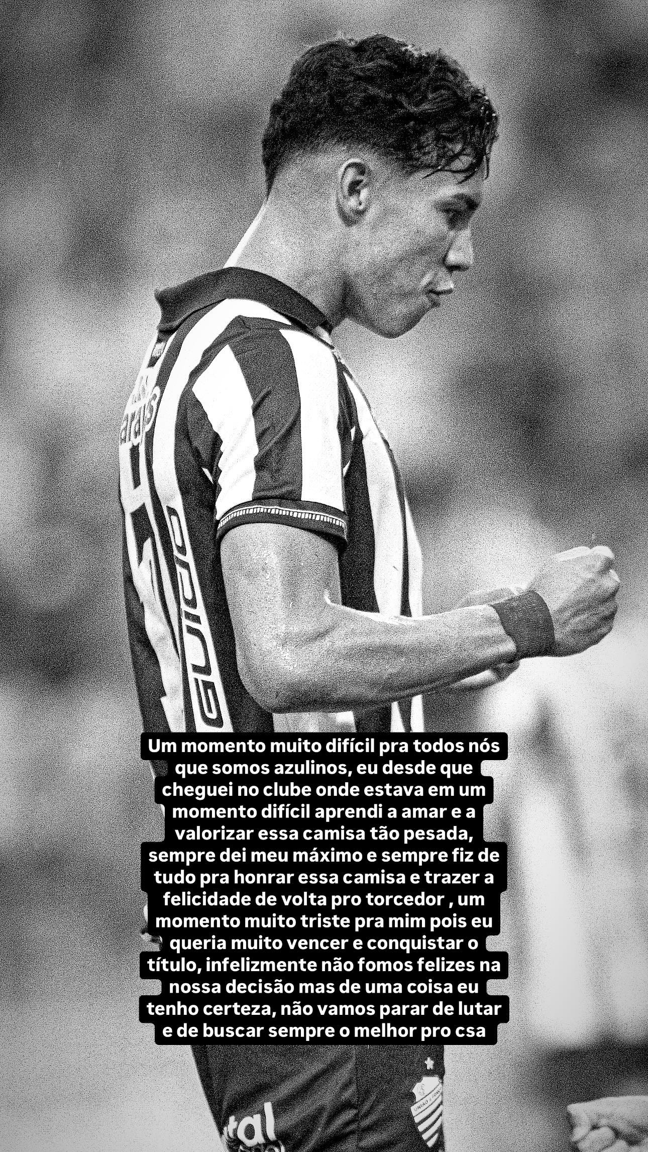 “Um momento muito triste pra mim, pois eu queria muito vencer e conquistar o título. Infelizmente, não fomos felizes na nossa decisão, mas de uma coisa eu tenho certeza: não vamos parar de lutar e de buscar sempre o melhor para o CSA”, encerrou.