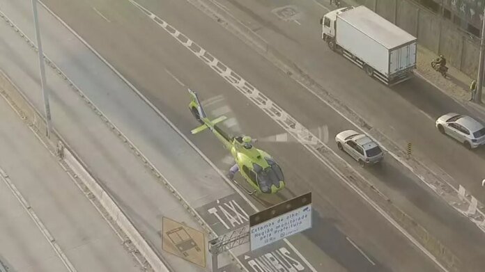 Um helicóptero da Secretaria Estadual de Saúde precisou interditar a Avenida Brasil, na altura do Jardim América, na Zona Norte do Rio, na manhã desta sexta-feira (18), para garantir o transporte urgente de órgãos para um transplante.