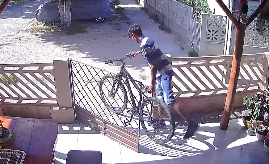 Imagens de uma câmera de segurança captaram o momento em que ele mexe no portão e se afasta do local. Então retorna alguns segundos depois e entra na residência, como se morasse no local. Na sequência, o suspeito aparece saindo da casa com uma bicicleta preta. Ele sobe no veículo e vai embora pedalando, deixando o portão aberto.