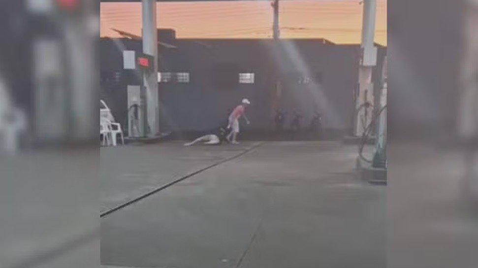 Segundo a Polícia Militar, a equipe foi acionada e, ao chegar no posto, foi informada pelos frentistas que o homem deixou o estabelecimento carregando a vítima nas costas.