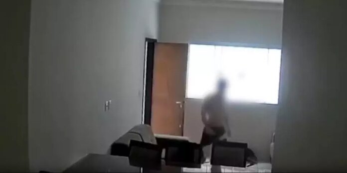 Diante das suspeitas, a moradora instalou recentemente uma câmera dentro do quarto, que registrou a ação do suspeito.