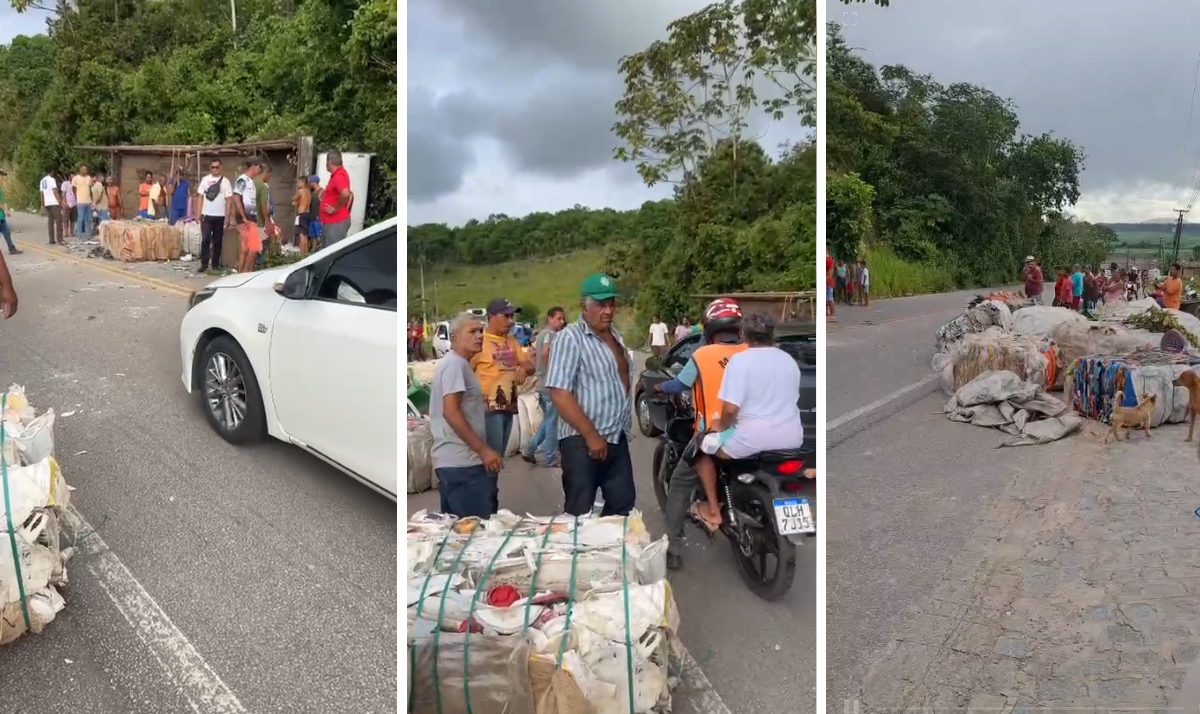 Segundo informações, o veículo estava carregado de material reciclável quando tombou em um trecho da rodovia AL-105.