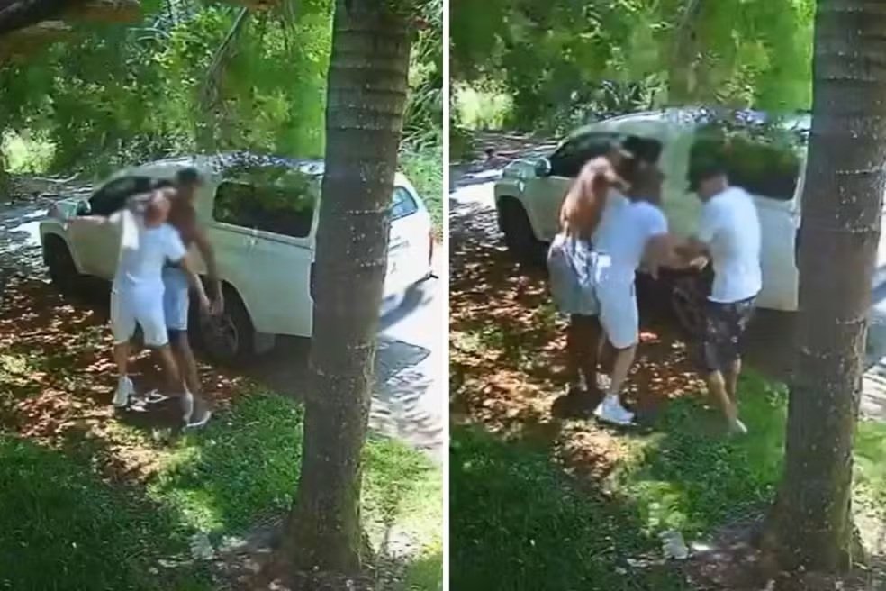 Imagens gravadas por câmeras de monitoramento mostram os suspeitos, ainda não identificados pelas autoridades, cercando a vítima do lado de fora do carro. Em determinado momento, um dos criminosos ataca o idoso por trás e o outro aparece para tirar a chave da mão dele.