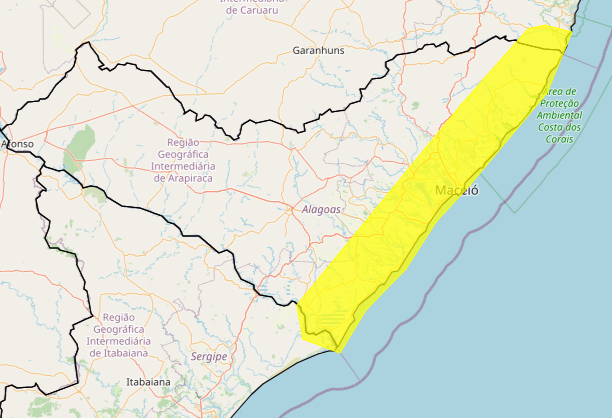 O Instituto Nacional de Meteorologia (Inmet) ampliou o alerta de chuvas intensas para mais municípios do Leste de Alagoas nesta terça-feira, 19. O aviso de cor amarela (Perigo Potencial) vale até, pelo menos, às 10h desta quarta-feira (20).