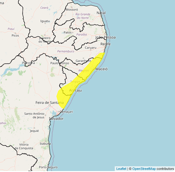 O Instituto Nacional de Meteorologia (Inmet) emitiu nesta segunda-feira, 16, um novo alerta amarelo para acumulado de chuvas para 58 município de Alagoas.
