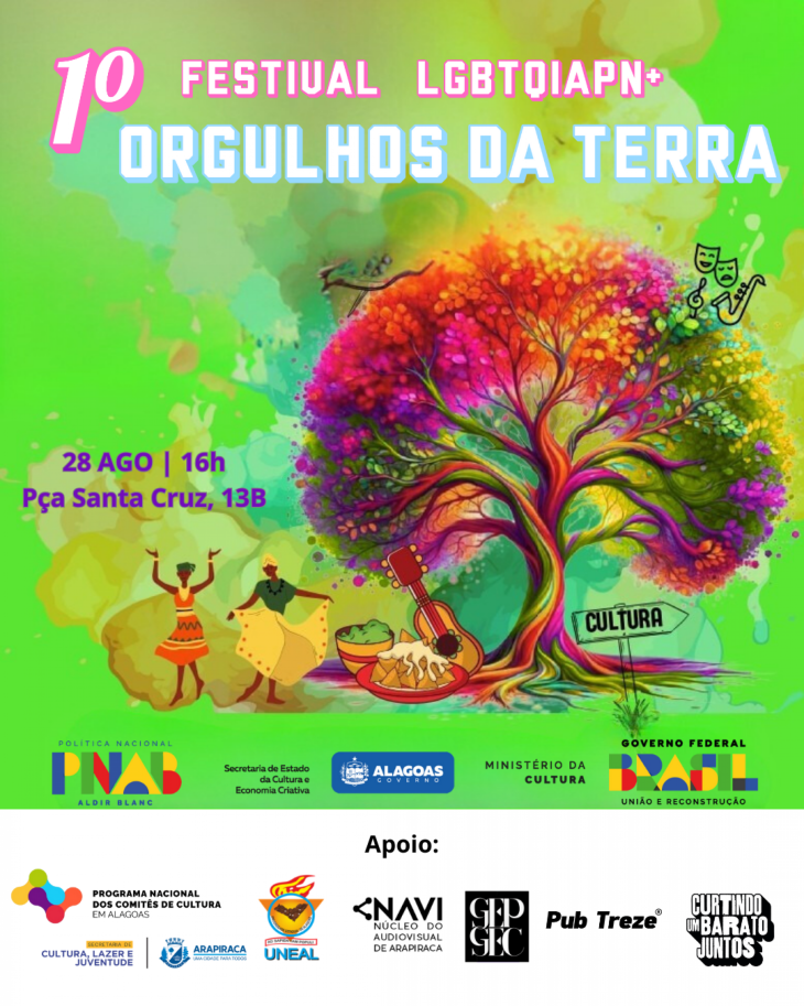 A cidade de Arapiraca se prepara para receber o 1º Festival de Arte LGBTQIA+ – Orgulhos da Terra, uma celebração da diversidade e inclusão no Agreste alagoano. O evento será realizado no dia 28 de agosto de 2025, na Praça Santa Cruz, a partir das 16h, com entrada gratuita.
