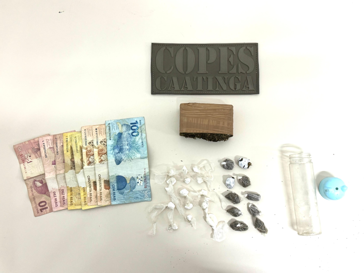 A prisão e apreensão ocorreu após uma guarnição da Companhia Independente de Operações Policiais Especiais do Sertão (Copes) receber uma denúncia de som alto e uso de entorpecentes em uma residência.