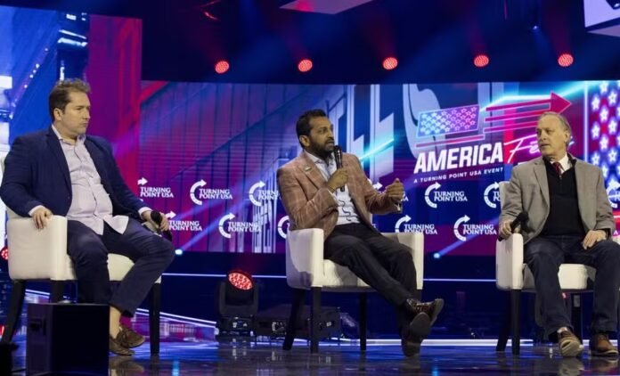 Darren Beattie, à esquerda, em evento nos EUA em 2022 — Foto: Sipa USA via Reuters Connect