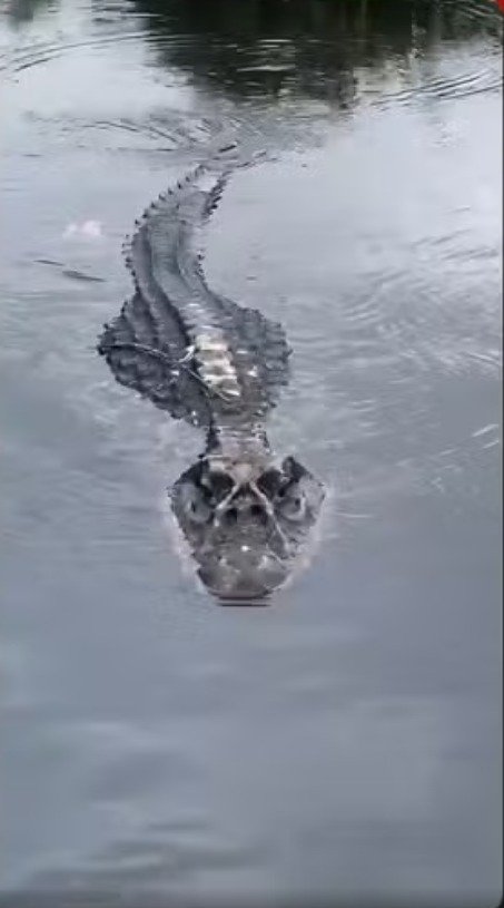 Em outro vídeo, é possível ver um dos jacarés próximo à base flutuante. Vários turistas estavam na plataforma flutuante, acompanhando a aproximação do animal. Veja o vídeo abaixo.