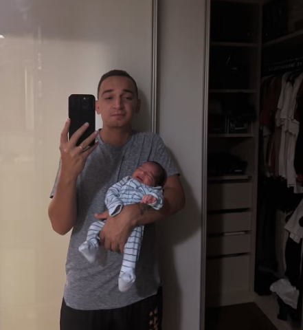 João Gomes passou a noite em claro com o filho Joaquim, que completa uma semana neste domingo (14), mesmo dia que o cantor se apresenta no The Town junto com o rapper e ator Jota Pê às 14h40. Em suas redes sociais, ele escreveu em uma foto em frente ao espelho, com o bebê nos braços: