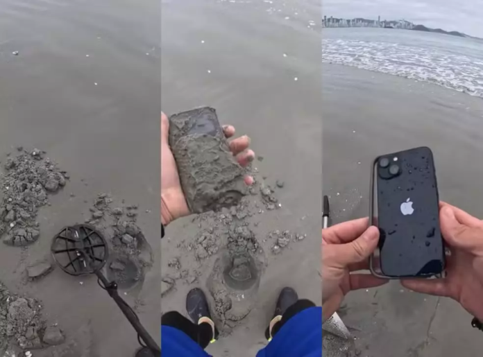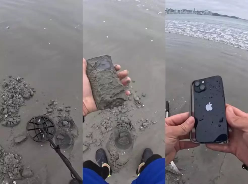 Iphone foi encontrado enterrado em praia de Balneário Camboriú com detector de metais | Foto: Redes sociais/ Reprodução
