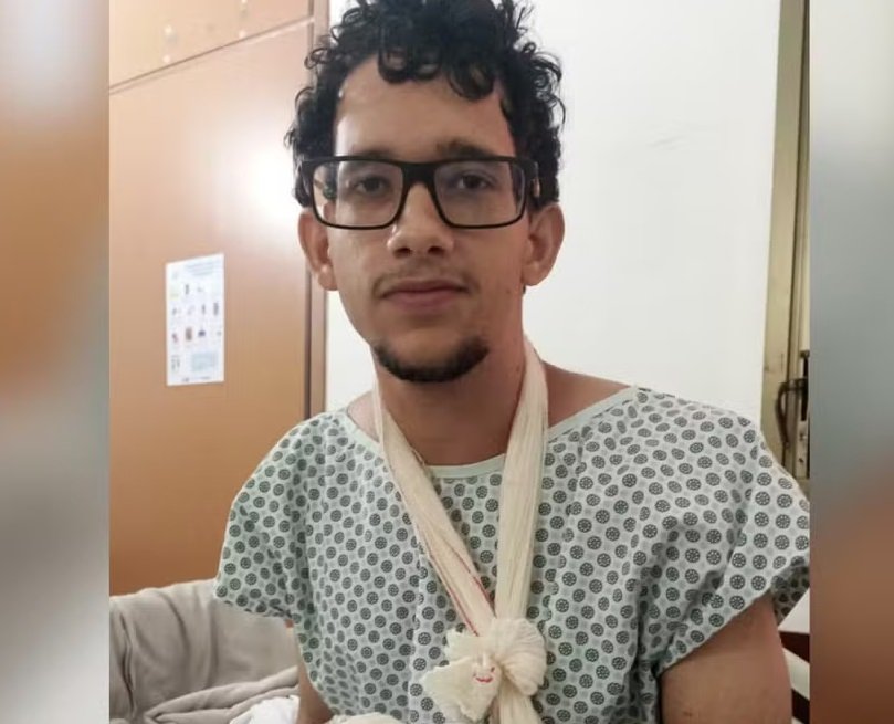O jovem Thiago Sousa Santos Cruvinel, de 20 anos, ficou ferido após um bolo explodir na mão dele durante uma festa de aniversário organizada por amigos. Segundo a mãe, Sirley Sousa, a explosão aconteceu por causa de uma brincadeira feita por um amigo do filho, que teria colocado uma “bombinha” dentro do alimento.