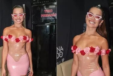 A peça rosa, com aplicação de flores e transparência, foi realçada com óculos nos mesmos tons.