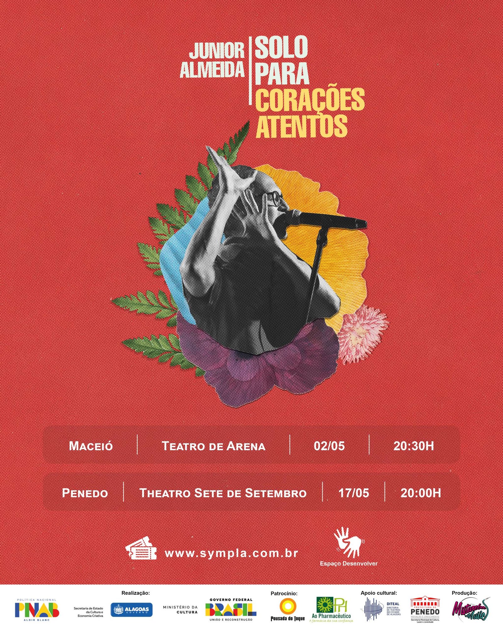 Vendas on-line: https://www.sympla.com.br/evento/junior-almeida-em-solo-para-coraCOes-atentos/2915705