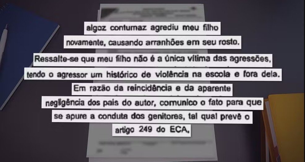 Em nota enviada ao g1 em 2025, o pai da criança que registrou o boletim de ocorrência defendeu sua conduta e afirmou que “buscou reiteradamente auxílio da escola e dos profissionais responsáveis”.