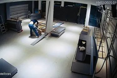 O furto aconteceu na última quarta (19). Imagens do circuito interno de segurança do local flagraram o momento em que dois homens invadem a loja, que ainda seria inaugurada, e levam equipamentos de marcenaria, televisões e um micro-ondas. A dupla escapou em uma motocicleta.