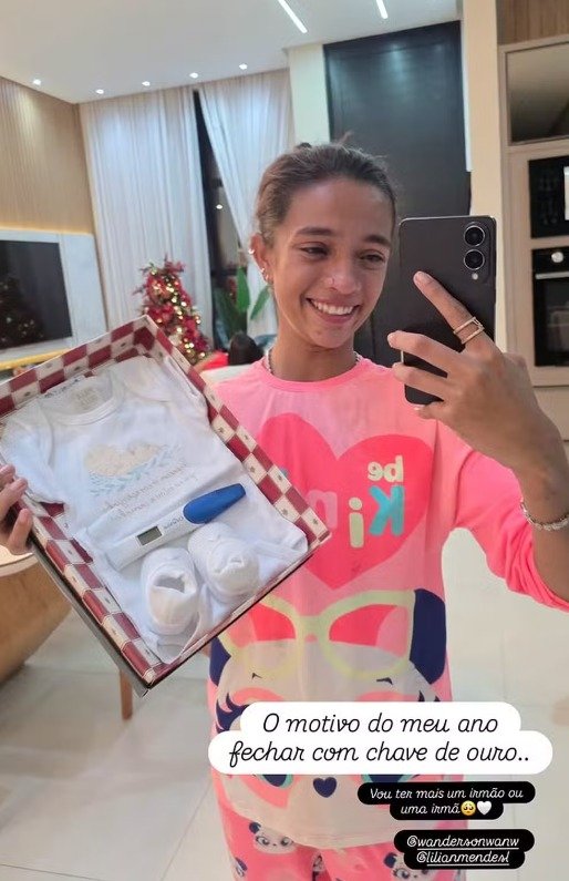 “O motivo do meu ano fechar com chave de ouro… Vou ter mais um irmão ou irmã”, escreveu.