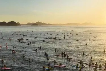 O Rio de Janeiro amanheceu com lotação de praticantes de stand up paddle no mar de Copacabana, na Zona Sul da cidade, na manhã desta quinta-feira (27). Era possível ver centenas de pessoas e, inclusive, alguns grupos conversando. Muitos assistiam o nascer do sol.