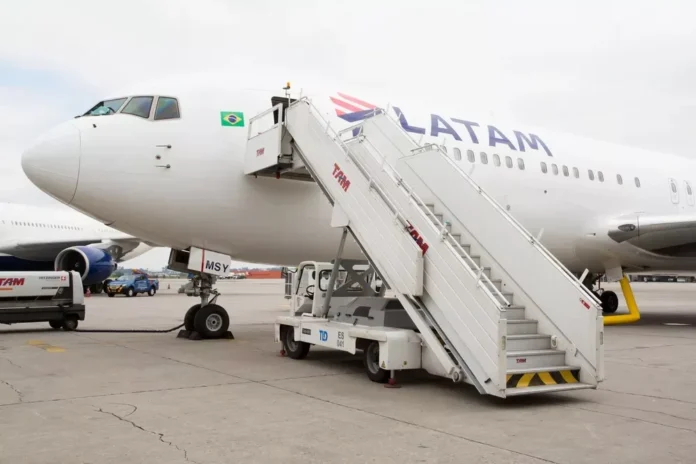 Avião da companhia aérea Latam no pátio do Aeroporto Internacional de São Paulo – Cumbica (GRU), em Guarulhos — Foto: Celso Tavares/G1
