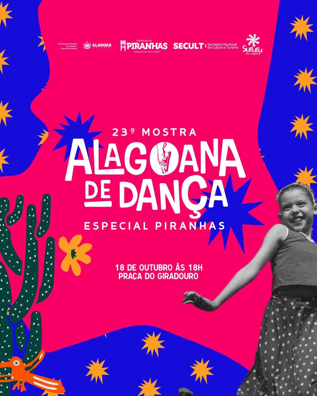 O município de Piranhas recebe, neste sábado (18), uma edição especial da 23ª Mostra Alagoana de Dança, o maior evento de valorização da dança em Alagoas. O espetáculo acontece a partir das 18h, na Praça do Giradouro, no Centro Histórico, reunindo 13 grupos de várias regiões do estado e apresentando estilos que vão do xaxado ao balé clássico, passando pelo hip hop, contemporâneo, dança afro, parafolclórico, popular e cigana.