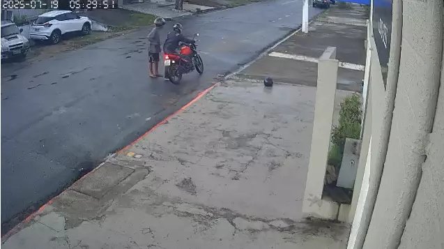 Contudo, ao tentar ligar a moto para fugir, o assaltante em frente dificuldade e exige que a vítima o ajude. Posteriormente, o suspeito foge com a moto roubado.