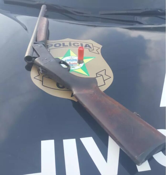Ela foi localizada no bairro Barro Vermelho, onde os policiais encontraram uma espingarda calibre 12, municiada, além de uma motocicleta usada no transporte do armamento.