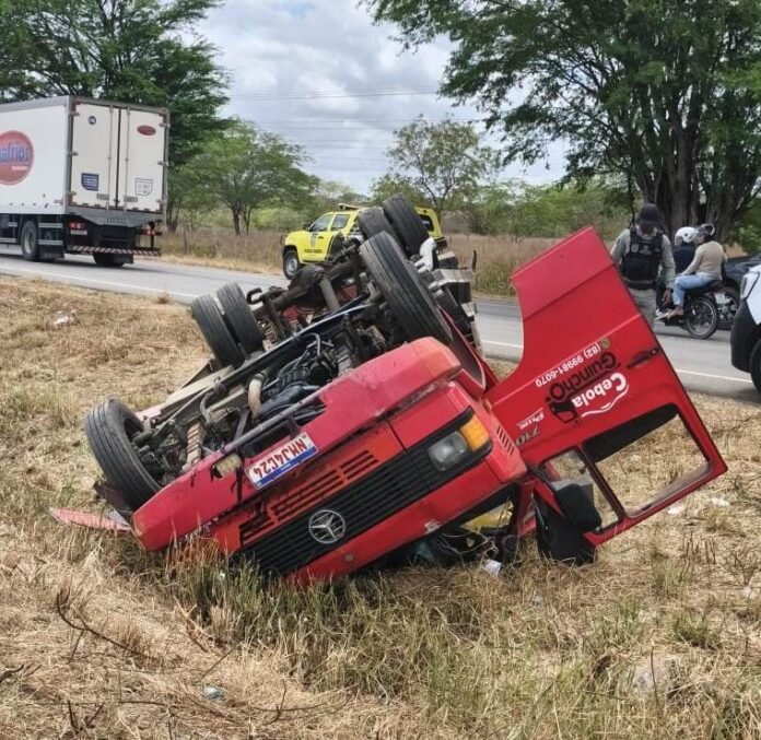 Populares registraram imagens da cena, que mostram o caminhão virado com o teto sobre o chão, em meio à vegetação seca às margens da rodovia. O Instituto Médico Legal (IML) foi acionado para realizar o recolhimento do corpo.