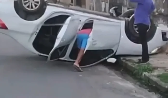 Moradores da região relataram que o tráfego ficou parcialmente interrompido por alguns minutos, até que a situação fosse normalizada. As autoridades devem investigar o que motivou a perda de controle do veículo.