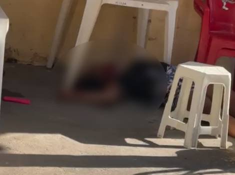 A vítima foi encontrada com o rosto ensanguentado, deitada com as costas no chão, ao lado de mesas e cadeiras plásticas. Ainda não se sabe as partes do corpo atingidas pelas balas.