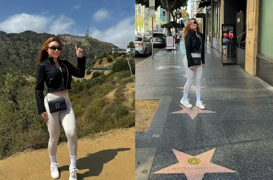 A nutricionista visitou pontos famosos de Hollywood, em Los Angeles, como a Calçada da Fama e o conhecido letreiro. Antes, ela passou também por Beverly Hills, outra região conhecida ao redor do mundo.