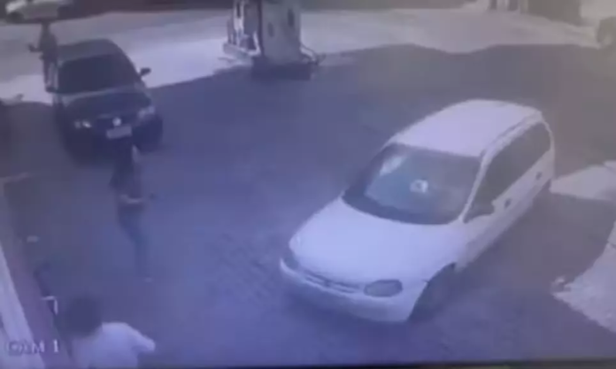 Mulher é atropelada por colega de trabalho após discussão em posto de gasolina em São João del Rei — Foto: Câmera de Monitoramento