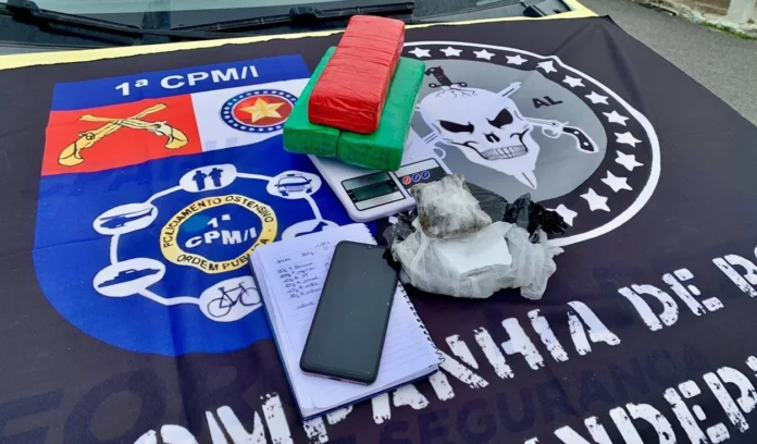 Mulher é presa com mais de 2 kg de drogas em São Miguel dos Campos (imagens: 1ª Cia/Ind)