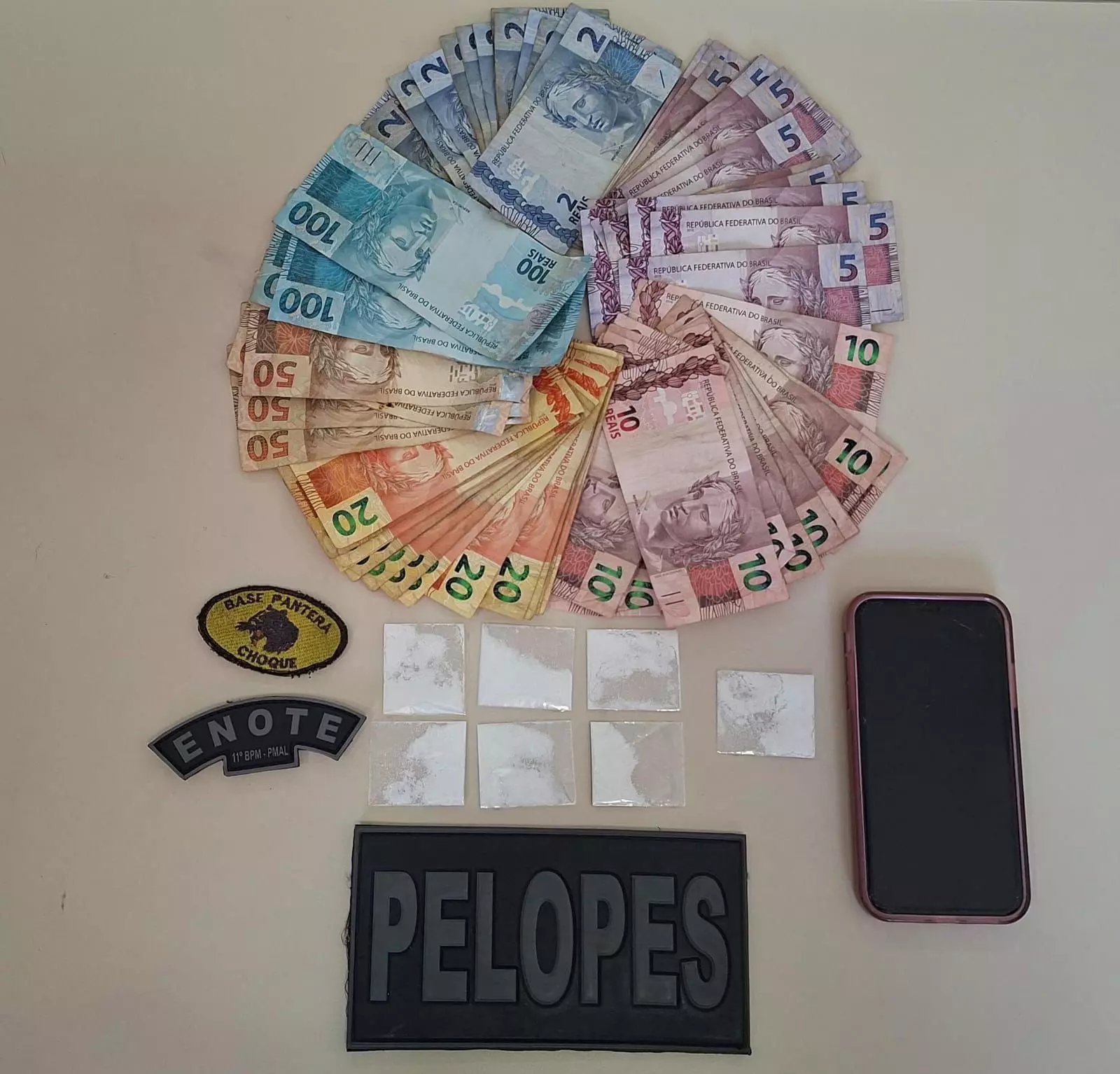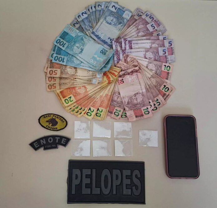 Durante a abordagem, os policiais também perceberam uma quantia em dinheiro sobre um armário na sala da casa. Questionada sobre a origem dos R$ 1.208,00, ela afirmou que vinha de um saque realizado no dia anterior, mas não apresentou comprovante que confirmasse a versão.