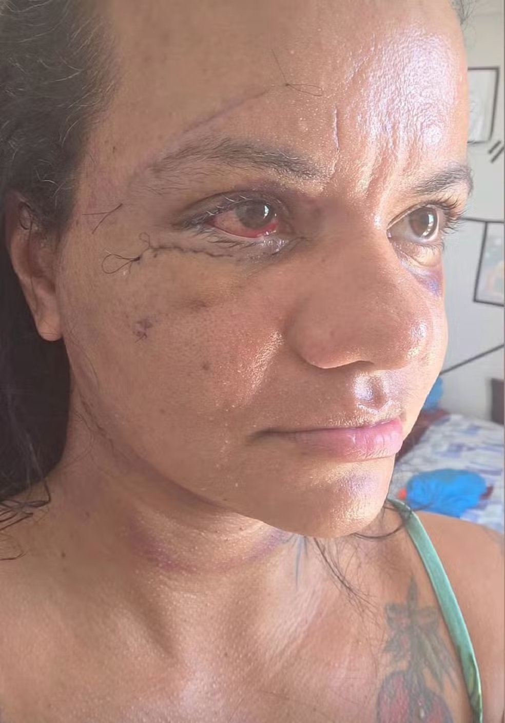 A imagem foi postada no perfil dela em uma rede social, mostrando o sétimo dia de recuperação após o procedimento. Ela teve alta hospitalar na segunda-feira (4).