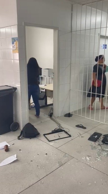 Em vídeos enviados à reportagem do Alagoas 24 horas, a mulher inicialmente discute com pessoas que estão na área interna da unidade, enquanto ela mesma se encontra na recepção. Sem ter acesso ao local, ela força a entrada em uma sala dando chutes na porta e depois quebra vários equipamentos eletroeletrônicos como CPUs e monitores.